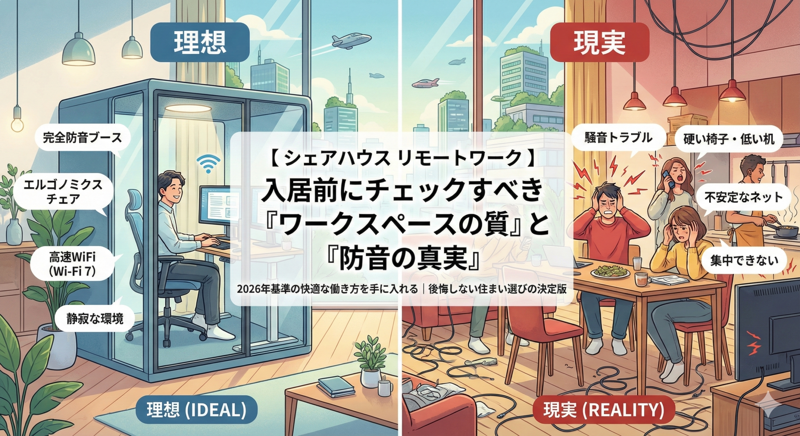 2026年のリモートワークが当たり前になった社会において、シェアハウス選びは人生の質を左右する大きな決断です。「おしゃれなラウンジがあるから」「なんとなく交流が楽しそうだから」という理由だけで選んでしまうと、入居後に「仕事に集中できない」「身体を壊した」という深刻な現実に直面することになります。
