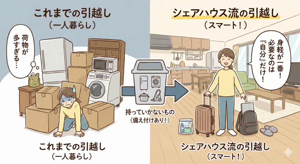 シェアハウスへの引越しは、一人暮らしのそれとは全くの別物。「身軽に動ける」という最大のメリットを活かしつつ、共同生活ならではの準備が必要です。