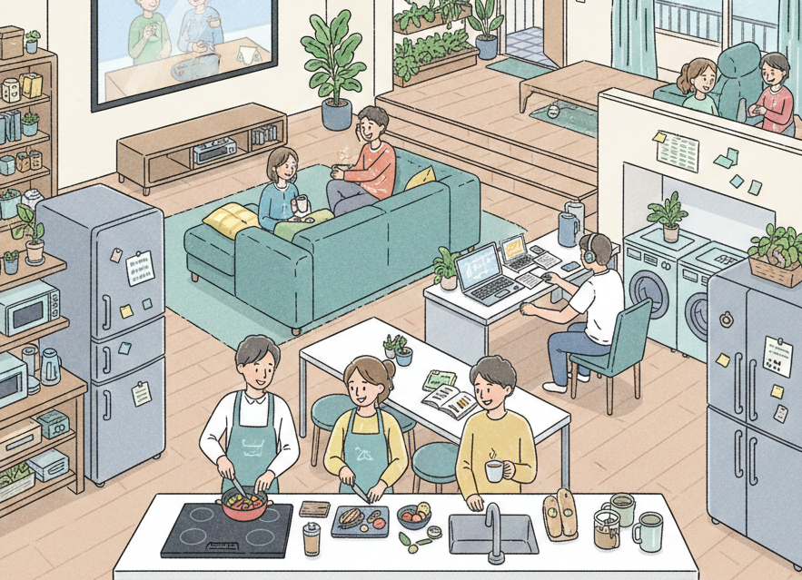 | 高速Wi-Fi、シアタールームなど、自分では持てない設備を利用できる | 設備管理のルールが複雑になりやすく、住人間で摩擦を生む可能性がある |