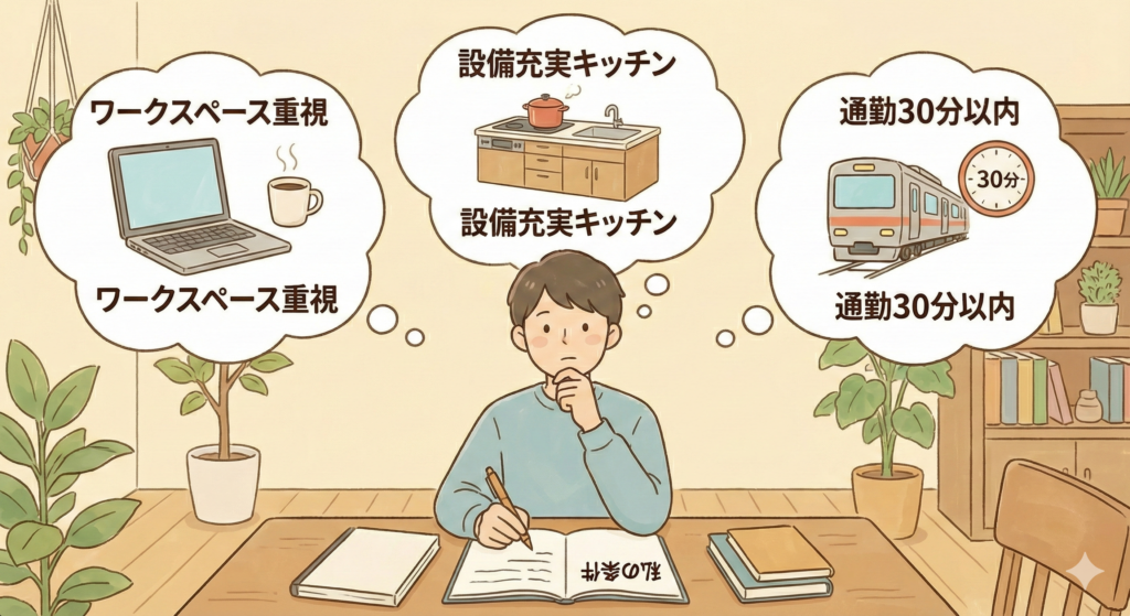 - 予算の「トータル」を決める: 前回の記事でも触れた通り、家賃+共益費+αの総額で考えます。