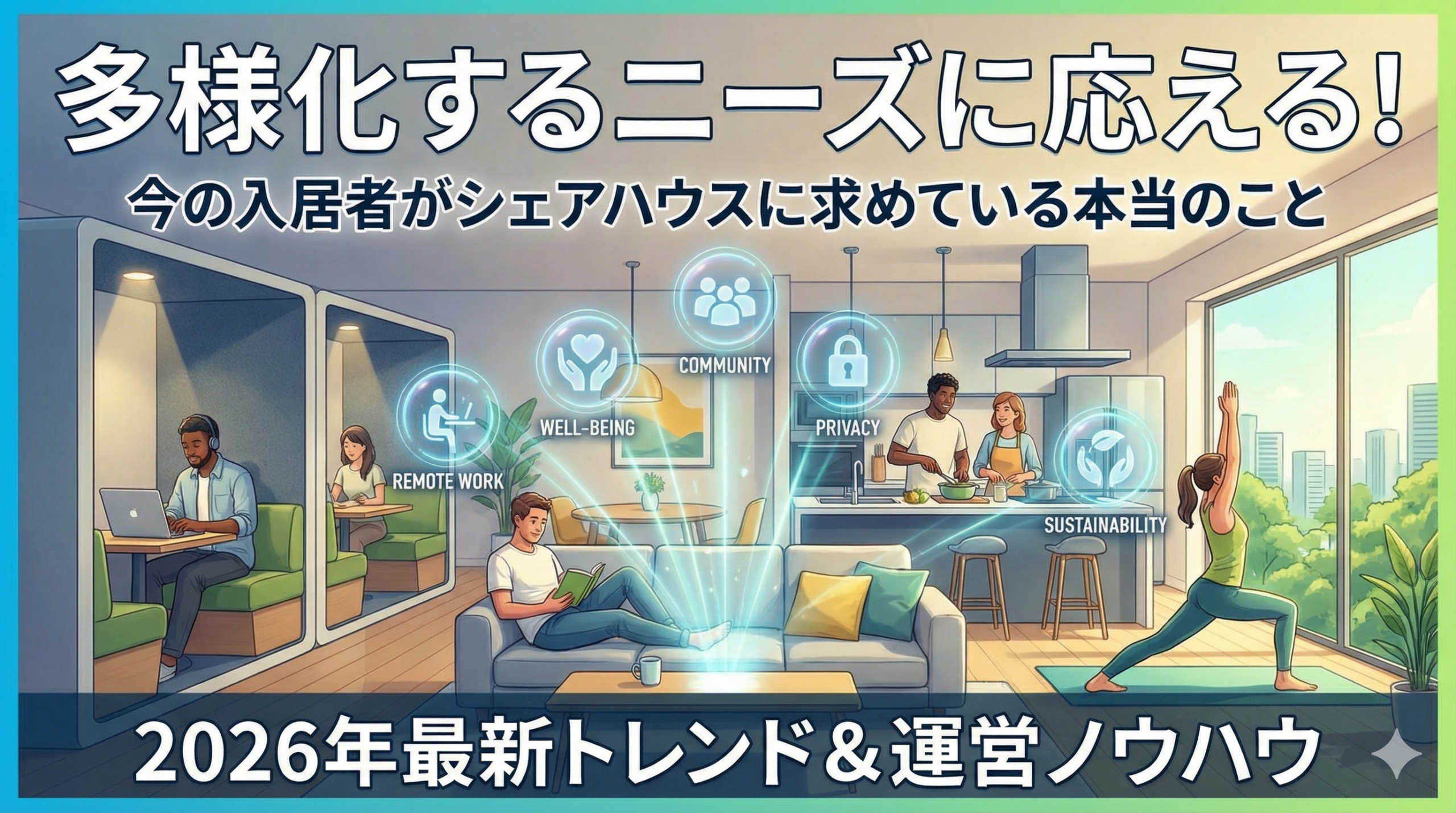 多様化する入居者ニーズに対し、オーナーとしてどのように向き合い、満足度を高めていけばよいのでしょうか。最新のトレンドを紐解きながら、今、入居者がシェアハウスに求めている「本当のこと」を深掘りします。