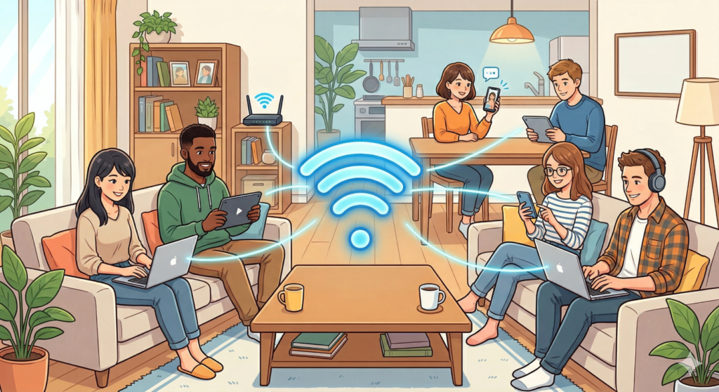 - 接続環境の格差: 1Gbpsの共有回線では、Web会議が重なる時間帯に遅延が発生します。最新のWi-Fi 7対応ルーターや、各フロアにアクセスポイントを配置したメッシュWi-Fiの構築は、今やライフラインとしての必須条件です。