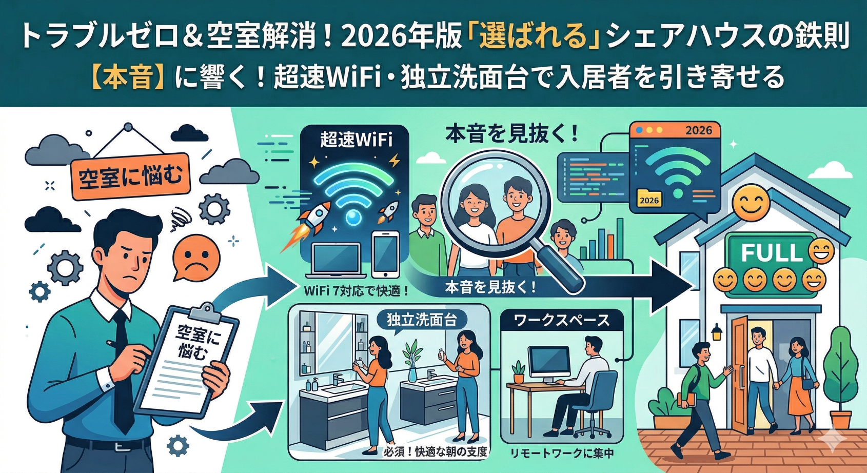 - 世帯数×1.5倍の容量: 「いつも埋まっていて使えない」という不満は、実はシェアハウスで非常に多い退去理由の一つです。