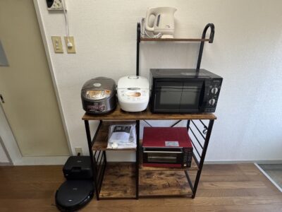 あり IHクッキングヒーター、電子レンジポット、炊飯器2個、冷蔵庫等