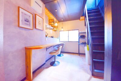 平成30年の台風第21号で外壁が半分吹き飛んでしまった建物を近所に住む現オーナーが譲り受け、建物の個性を残しながらも大幅にリノベーションして、シェアハウスGrande Pequeno(グランデ ペケーニョ)が誕生しました。名前は、スペイン語圏のキューバのような色使いで、大きめの部屋と小さめの部屋があることで様々なニーズに対応できることから、「スペイン語でGrande(大きい)Pequeno(小さい)」が由来になっています。アクセス面は”最寄り駅の一つ、京阪野江駅”からは淀屋橋・京都方面まで乗換なしで行くことが可能です。また”別の最寄り駅の蒲生四丁目駅”からは乗換なしで京橋に2分、心斎橋へは15分でアクセスが可能で、駅周辺には飲食店もたくさんあります。立地は住宅街にあり、交番も近くにあることで治安も良いので安心です。駅からシェアハウスまでの道のりには商店やコンビニがあり、またスーパーは徒歩5分圏内に2軒あるので、お買いのものにも便利なのもポイントです。