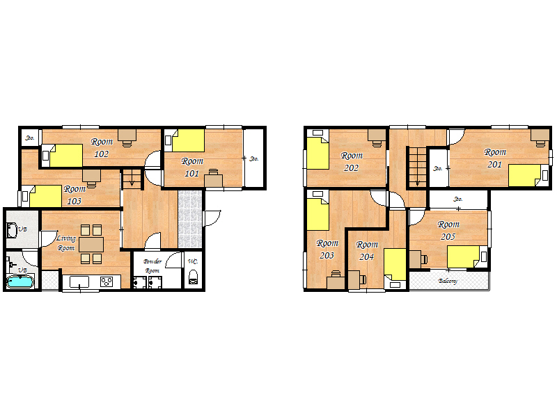 ・2人で1室の利用(ドミトリー)