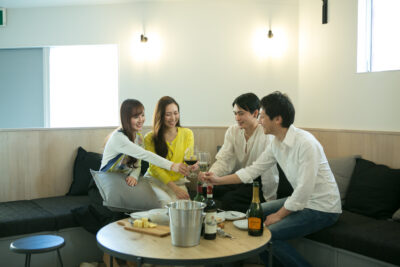 『ひとりじゃない、ひとり暮らし』大きな窓から暖かな光が差し込むライブラリーリビング。オーダーメイドの家具たちがあなたの生活を彩ります。 「ただいま、おかえり。」そんな些細な一言がある毎日の嬉しさ。リビングを拠点に、8人がゆるりと心地よくつながります。どこを切り取っても映える。隠れ家のような。やさしさと洗練が調和する空間を是非。